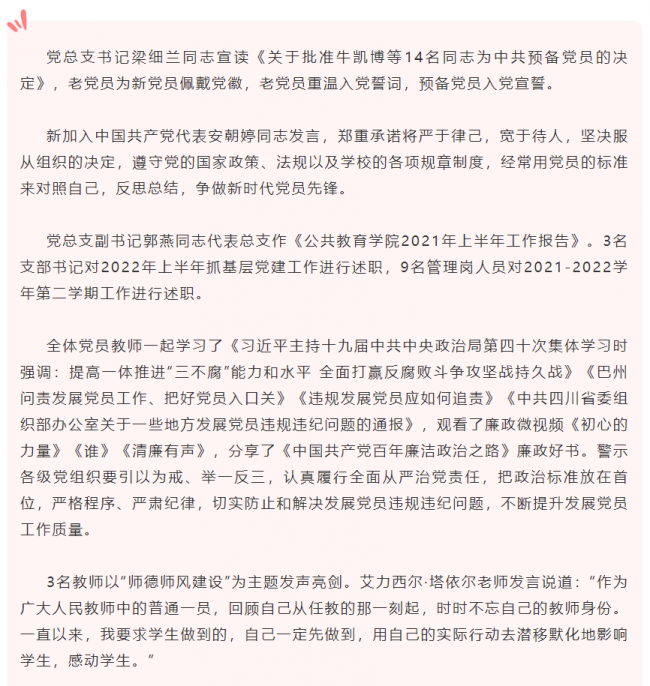 下一条: 公共教育学院开展党总支6月“青春献礼二十大、经典筑梦向未来”主题党日活动