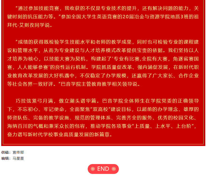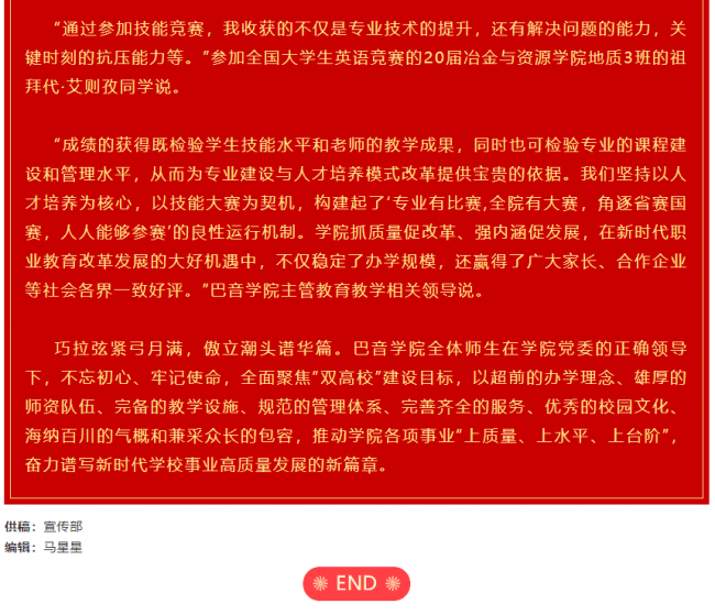 下一条: 以赛促教 以赛促学 赛教结合 赛学相融---巴音学院高技能人才培养成果丰硕