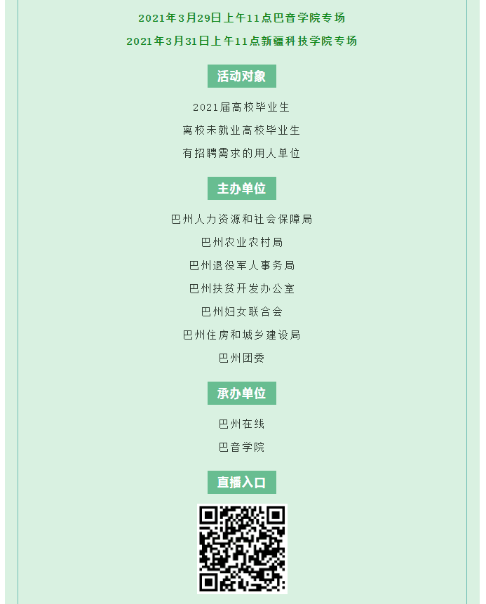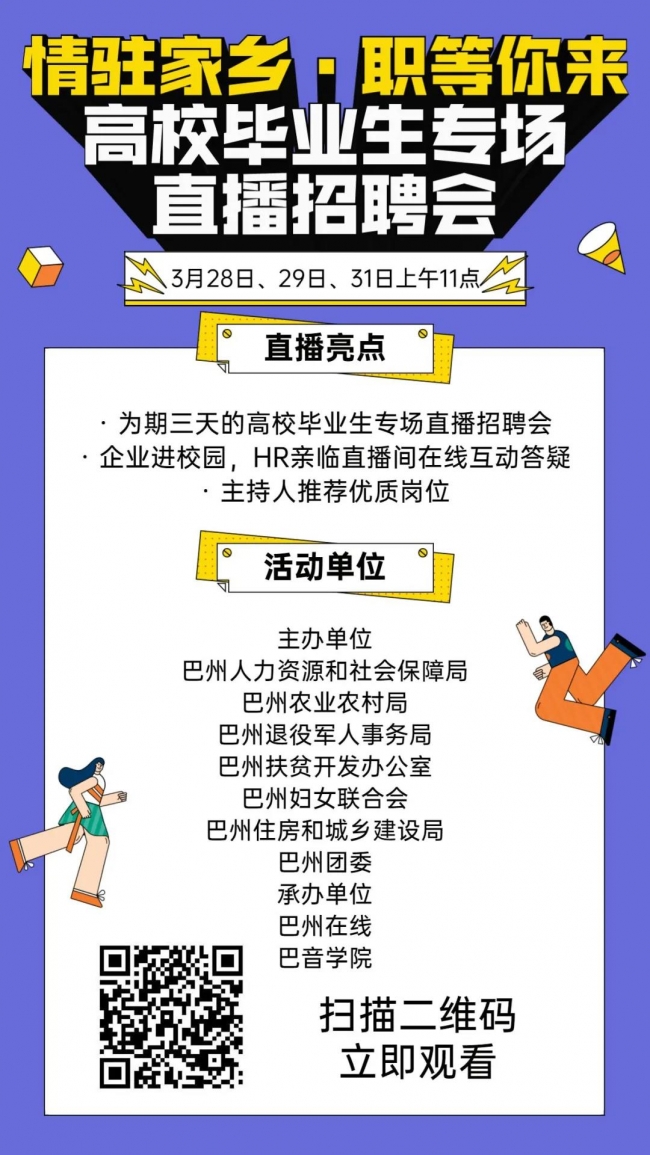 上一条: 明天上午11点!2021年巴州企业进校园直播招聘会即将开启!“职”等你来~