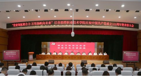为庆祝中国共产党成立103周年,全面贯彻落实党的二十大和二十届二中全会精神,推动用习近平新时代中国特色社会主义思想凝心铸魂,深入学习贯彻习近平总书记关于党的建设的重要思想,激励广大师生党员奋发有为、砥砺前行,不断增强基层党组织凝聚力和战斗力,7月1日下午,best365中国官方网站(以下简称巴音学院)召开“党建领航聚合力 万里扬帆向未来”——庆祝中国共产党成立103周年暨表彰大会。学院党委书记简小东等党委班子成员及全体党员参加会议,党委副书记、院长古丽娜·肉孜主持会议。