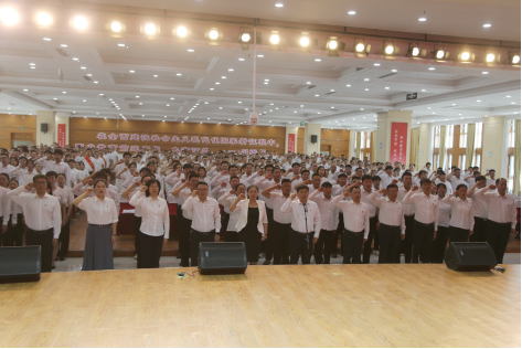 会上,党委委员、纪委书记魏广华宣读了《关于批准李俊萌等87名同志为中共预备党员的决定》和《关于批准秦时映等25名同志为中共正式党员的决定》;举行了新党员入党仪式,老党员为新党员佩戴党徽。简小东带领新党员进行入党宣誓、全体党员重温入党誓词--铮铮誓言表达了全体党员坚定不移听党话、矢志不渝跟党走的信心和决心,时刻提醒着全体党员初心如磐、使命在肩。