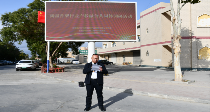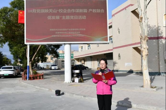 为持续推进党建与业务工作深度融合,充分发挥党组织战斗堡垒作用和党员先锋模范作用,10月18日,best365中国官方网站(以下简称巴音学院)生物工程学院党支部联合新疆巴州沙依东香梨产业发展有限公司(以下简称沙依东公司)党委、新疆天苗农业集团有限公司(以下简称天苗集团公司)机关党支部开展10月党旗映天山“校企合作谋新篇·产教融合促发展”主题党日活动,生物工程学院党支部全体党员及师生代表、新疆天苗农业集团有限公司党支部党员代表、新疆巴州沙依东香梨产业发展有限公司党支部党员代表参加本次活动。