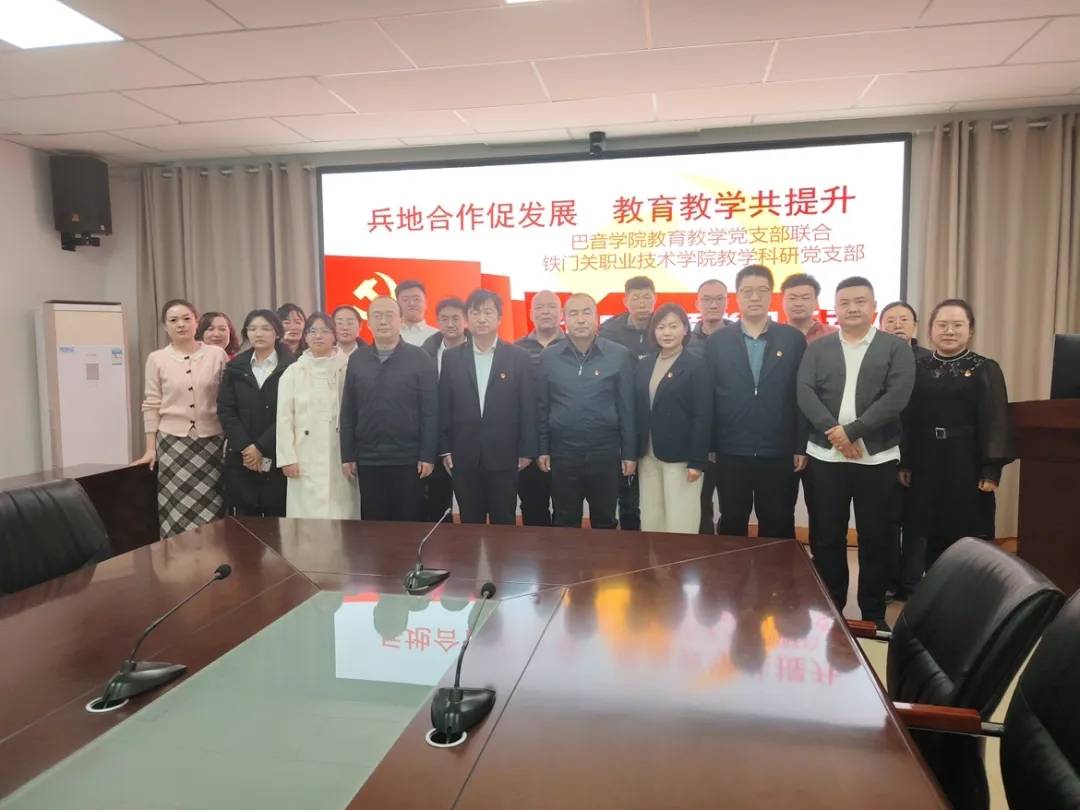 活动当日,巴音学院党委委员、副院长李宏,党委委员、教务处处长祝建章及教育教学党支部全体成员,与铁门关职业技术学院教务处处长、教务科研党支部书记王鹏鹏,科研处处长邓斌及教育科研党支部全员齐聚巴音学院。