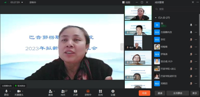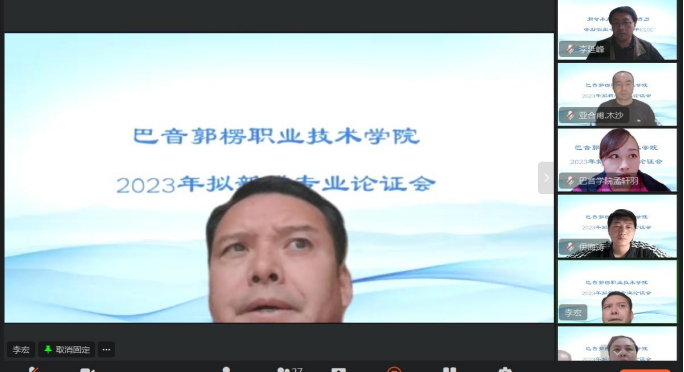2022 年 10 月 27 日下午,学院 2023 年度新增专业申报论证会通过钉钉线上会议方式召开。党委副书记、院长 古丽娜·肉孜,党委委员、副院长李宏,党委委员、教务 处处长张敏以及各专业委员会成员、新增专业负责人及团 队成员参加了会议。论证会由教务处副处长李延峰主持。 会上,教务处副处长李延峰介绍了自治区教育厅、学
