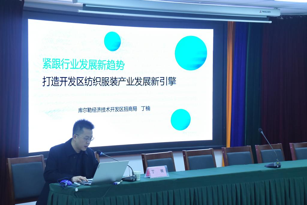 2023年3月3日16:00,为进一步加强以产业发展为导向,围绕自治区“八大产业集群”布局和州党委确定的“七大战场”,教务处在主教学楼二楼报告厅召开纺织服装产业规划及布局主题讲座的活动。由库尔勒经济技术开发区招商局副局长丁楠同志专程线下作服装产业规划及布局主题讲座。