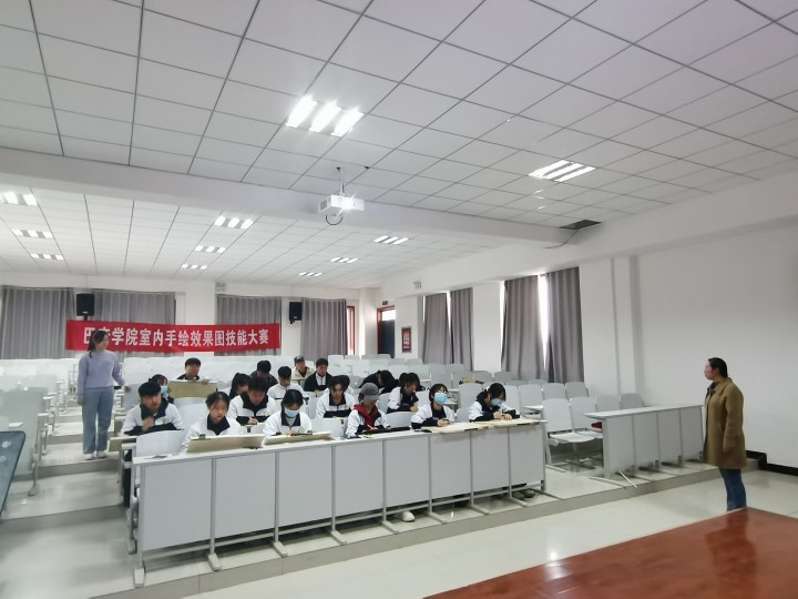 由黄晓夏,侯柳云,刘玲三位老师担任此次技能大赛的监考。比赛内容紧密结合建筑装饰工程技术专业课程要求,从实践的角度考查了学生室内手绘水平,进一步提升了学生的专业技能素养。