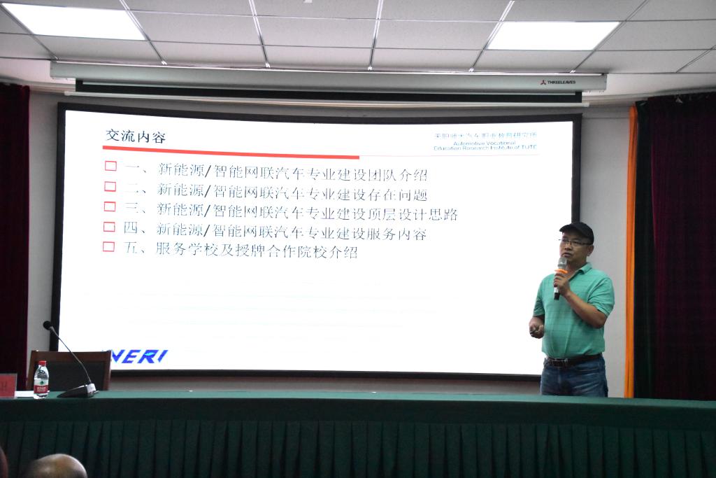 会议最后,由天津职业技术师范大学汽车职业教育研究所所长申荣卫教授为参会者带来了《基于工作过程的新能源汽车专业建设方案解析》精彩讲座,从新能源/智能网联汽车专业建设存在问题、顶层设计思路、服务内容等方面进行了详细的解析,全面分析了新能源/智能网联汽车专业建设怎么去建设、如何建设等问题,得到在场热烈掌声和一致好评,会议圆满结束。