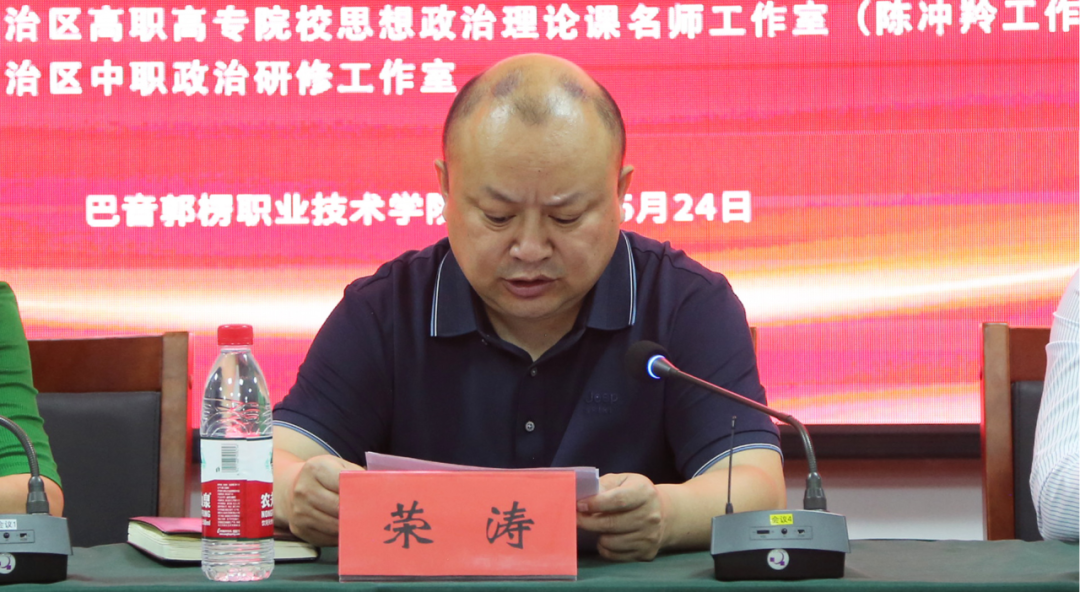 巴州教育局党组成员、副局长荣涛讲话时指出,“举办全州职业学校思政课教学能力大赛是自治州党委加强思政课队伍建设、提升思政课堂教学改革创新的一项重要举措。加强思政教育,需要从打造思政金课、打造高效课堂、提升思政教师队伍水平等方面入手。思政课教学比赛作为思政课教学工作的重要抓手,有助于提升思政课教师的教学能力,帮助有竞争力的老师在更高水平的教学比赛中创造佳绩,从而进一步推动思政课教学工作再上新台阶。他强调,各职业学校要结合此次比赛,持续把职业道德、工匠精神、劳模精神教育贯穿学生技能培养全过程,着力打造‘同频共振’课程体系,努力提升思政课堂效果。”