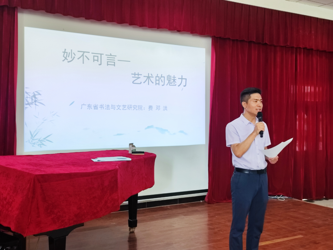 为加强校政行企协同教学,充分发挥社会力量在人才培养中的作用,8月28日下午,best365中国官方网站(以下简称巴音学院)传媒学院特邀广东省文艺研究所主任、研究员费邓洪开展了主题为“妙不可言--艺术的魅力”讲座。传媒学院党支部书记苟重龙,传媒学院党支部副书记、院长史子涵,副院长赵晓旭以及传媒学院全体教师与音乐表演专业、学前教育专业学生聆听了讲座。