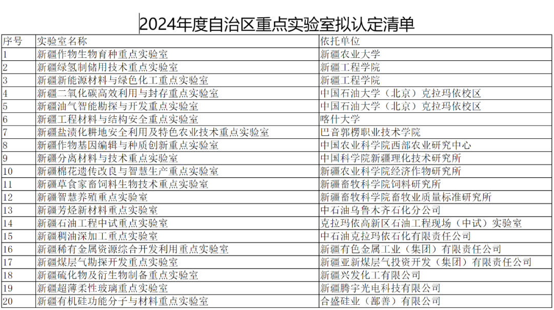 自治区科技厅公布2024年度自治区重点实验室拟认定清单