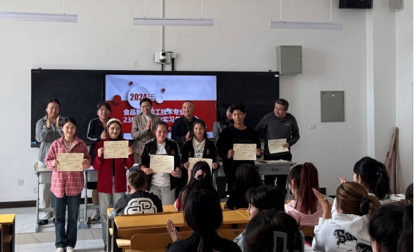 大会伊始,生物工程学院食品加工教研室主任王艳萍对学生实习情况进行总结。并对本次实习过程中表现优秀的17位学生进行表彰,并邀请学生代表发言交流。
