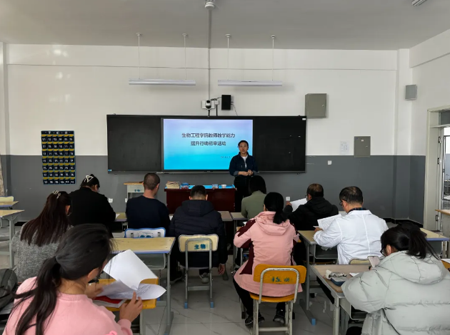 3月17日,生物工程学院举行教师教学能力提升行动评审活动。7个教学团队围绕专业人才培养方案,课程标准、教案、教学实施报告等内容进行现场展示。