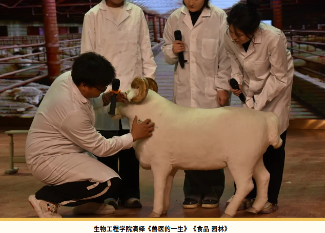 生物工程学院以兽医的成长故事为主线,通过轻松幽默的表演形式,生动展现动物医学、生物工程等专业的科技魅力与人文关怀。