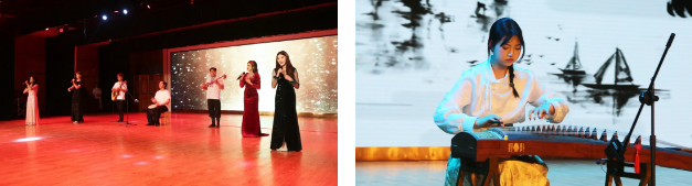 美声歌曲独唱《帕米尔我的家乡多么美》和古诗词歌曲独唱《春花秋月何时了》,展现出扎实的声乐功底,以婉转悠扬的歌声征服了在场观众。