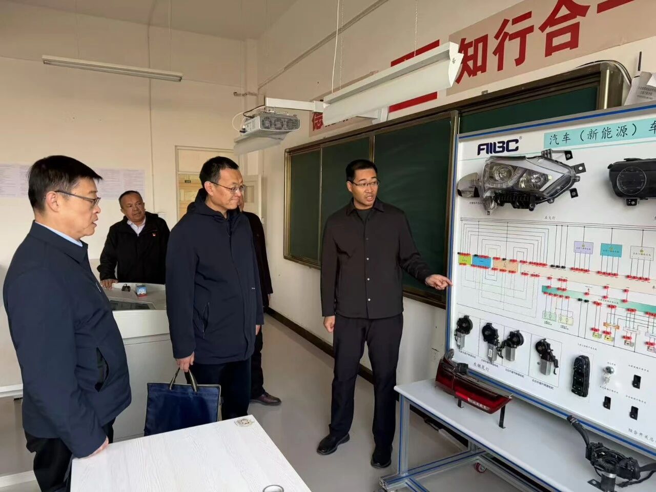 在交通工程学院的汽车实训室内,观看了学生实操演示,与指导教师深入交流课程设置、校企合作项目进展,并提出要紧密对接区域交通产业需求,优化“理实一体化”教学模式,培养符合企业标准的技能型人才。
