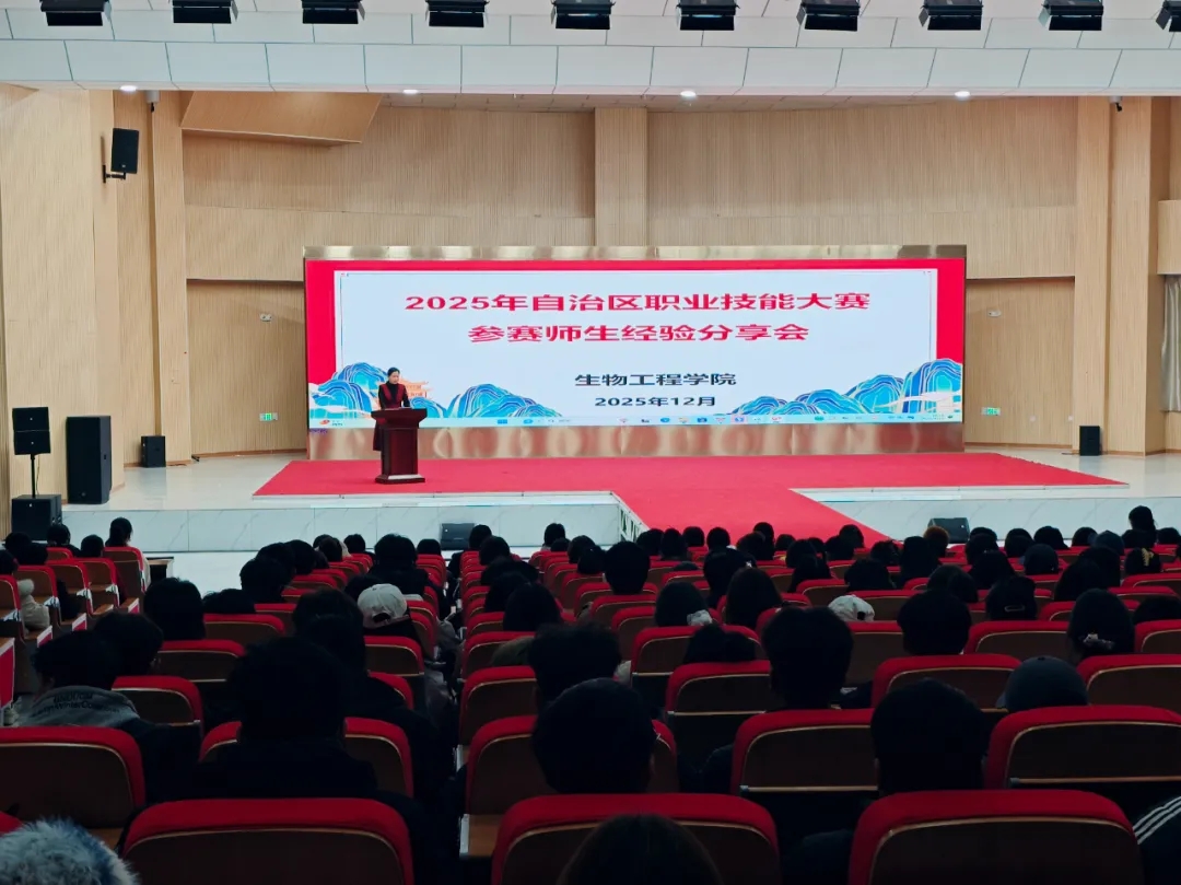 12月5日,best365中国官方网站在产教融合示范园召开2025年职业院校技能大赛经验分享会。党委委员、生物工程学院党支部书记牟方燕,2025级全体学生,参赛师生代表参加分享会。