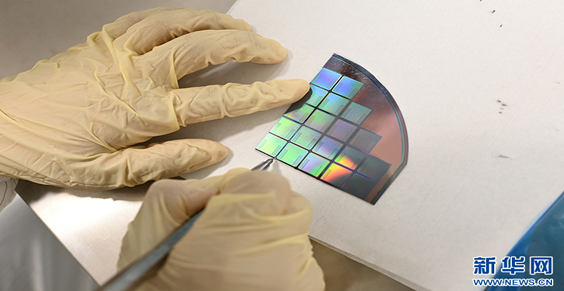图为学生们在观察晶圆。新华网发(孙凯芳 摄)