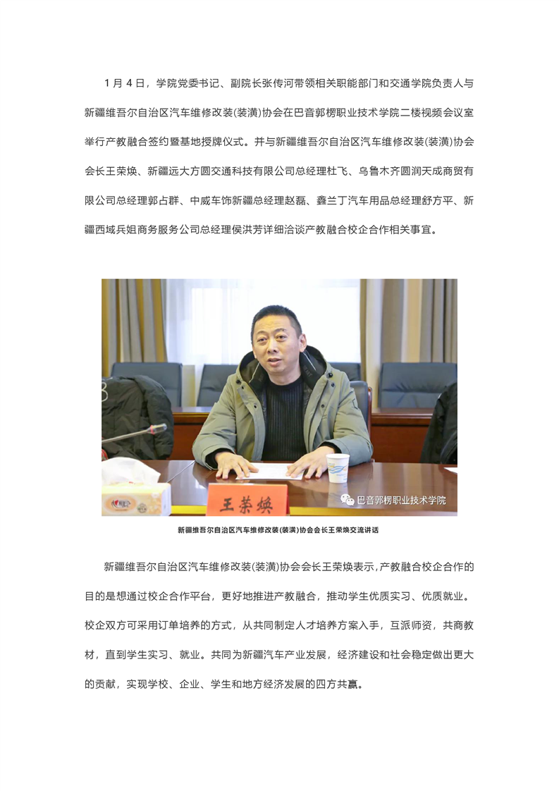 下一条: 学院与巴州荣英教育咨询有限公司举行校企合作签约暨基地授牌仪式