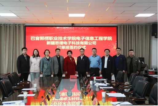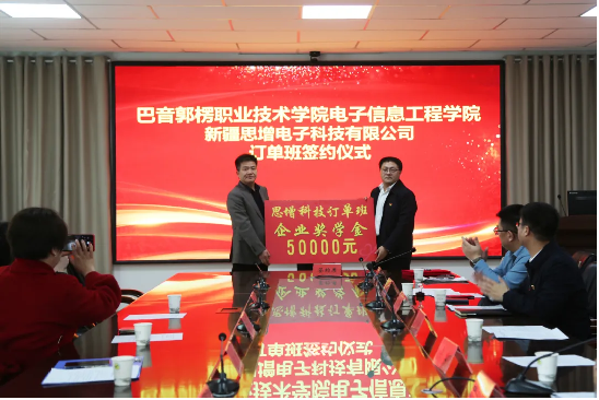 期间,电子信息工程学院党支部书记李延峰与新疆思增电子科技有限公司总经理李平代表双方签署了订单班协议。为了让订单班学生更好地学习与实践,新疆思增电子科技有限公司设立了“思增科技”订单班企业奖学金,提供50000元/每年的奖学金支持,为订单班的学生提供学习保障与支撑。同时,校企双方也计划进一步深化合作,实现多层次、多元化、多领域的协同发展,携手为巴州社会经济的发展培养更多高素质的应用型人才。