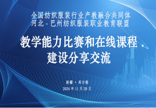 11月21日,全国纺织服装行业产教融合共同体、河北—巴州纺织服装职业教育联盟主办的教师教学能力比赛和在线课程建设分享交流会在best365中国官方网站(以下简称巴音学院)举行,此次会议采用线上形式开展。河北科技工程职业技术大学教授王瑞琴主讲,多所院校及企业人员线上参加此次会议,巴音学院纺织服装学院党支部副书记、院长丁盛主持会议,