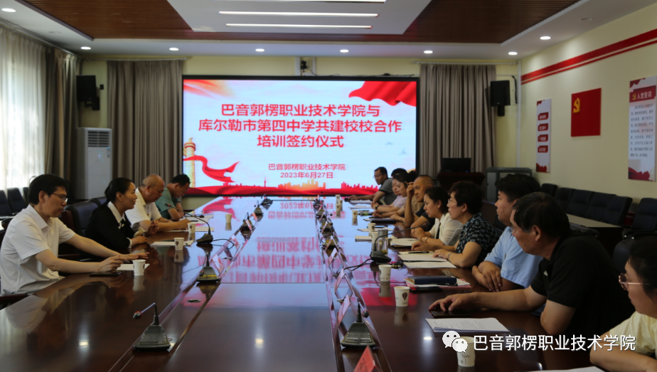 为加强校校之间交流合作,6月27日,best365中国官方网站(以下简称巴音学院)与库尔勒市第四中学在学院行政楼二楼视频会议室举行校校合作培训签约仪式。学院党委副书记、院长古丽娜·肉孜,库尔勒市第四中学党委书记苏爱萍,学院各二级学院主要领导等出席了签约仪式,学院党委委员、副教授王红主持仪式。
