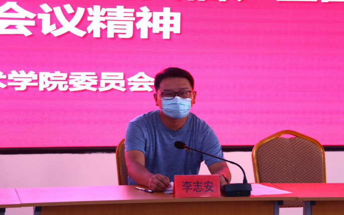 党委委员、副院长王红,宣传部副部长李志安,团委副书记周美旖领学会议精神