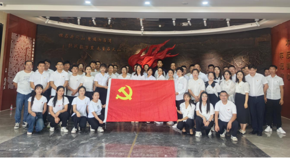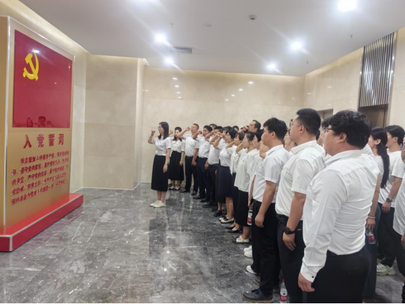 纪念馆参观结束后,在学院思想政治工作处教师陈雪雅的领誓下,全体辅导员面对党旗,庄严宣誓。每一句铿锵有力的誓言,都在表达着全体辅导员对党、对祖国的无限热爱和忠诚信念。