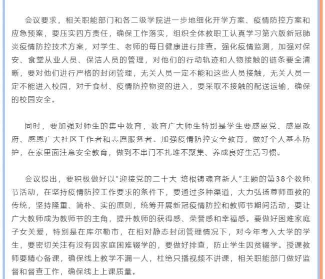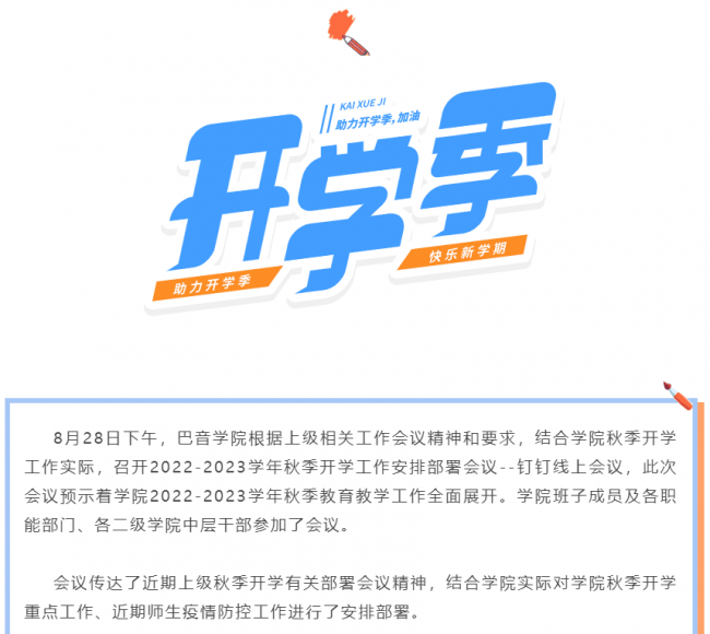 巴音学院召开2022-2023学年秋季开学工作安排部署会议---学院2022-2023学年秋季教育教学工作全面展开