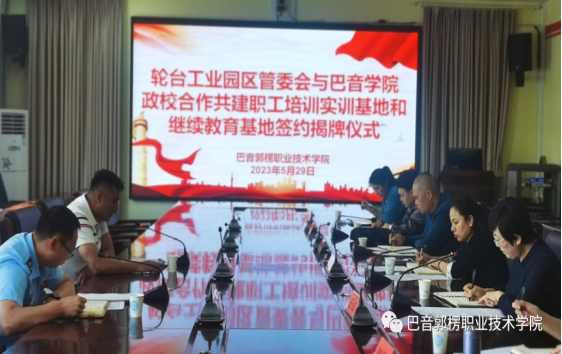 为充分发挥巴音学院资源优势,深化园区企业人才资源共享和优势互补。5月29日,轮台工业园区管委会与巴音学院在行政楼二楼视频会议室举行了政校合作共建职工培训实训基地和继续教育基地签约揭牌仪式。轮台工业园区党工委委员、副主任阿不力克木·阿不都热合曼,学院党委副书记、院长古丽娜·肉孜,轮台工业园区管委会安全生产监督管理局局长黄兴等出席了签约仪式,学院党委委员、副教授王红主持仪式。