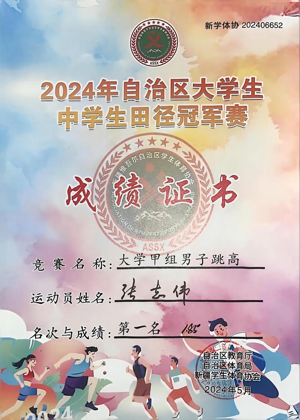 获奖感言:对于这次比赛,我深感荣幸和自豪,我很荣幸能参加这次田径冠军赛。但我也清楚地知道,这只是一个开始,未来的路还很长。获得了跳高第一名和跳远第二名,又荣获了国家二级运动员的证书,我感谢队友以及教练们给我的鼓励,在跳高跳过去的那一瞬间他们为我呐喊给我精神支持!我会保持初心,继续前行。再次感谢所有支持和鼓励我的人,让我们一起为美好的未来努力奋斗!