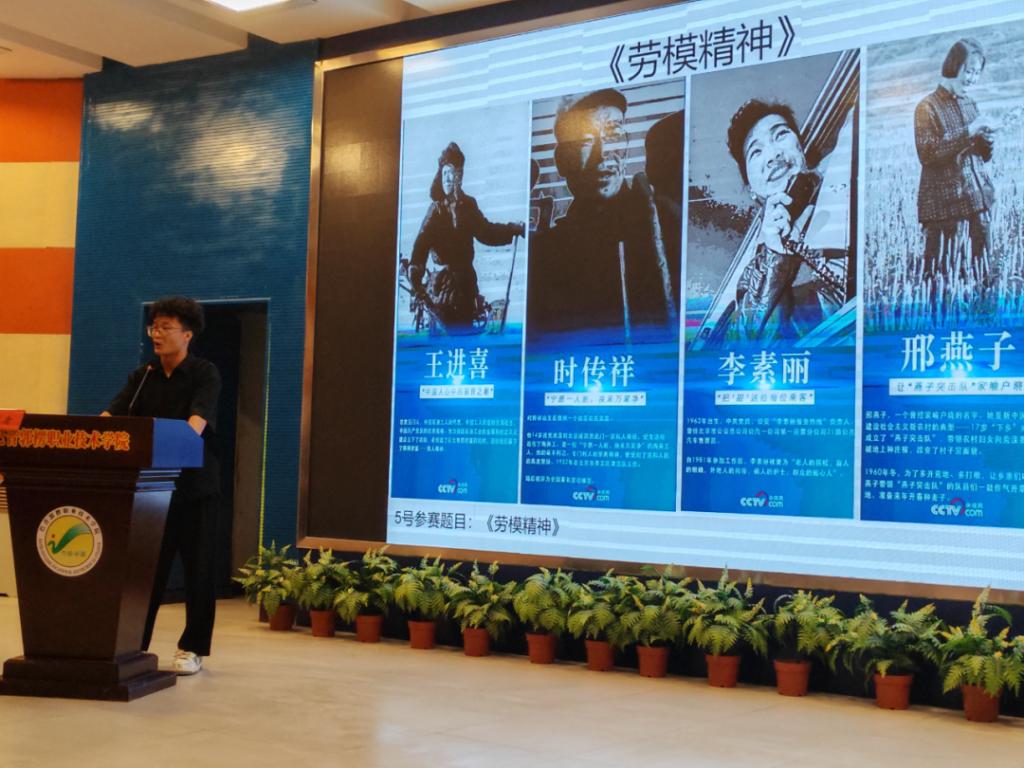获得二等奖学生刘丞懿以《劳模精神》为主题进行演讲