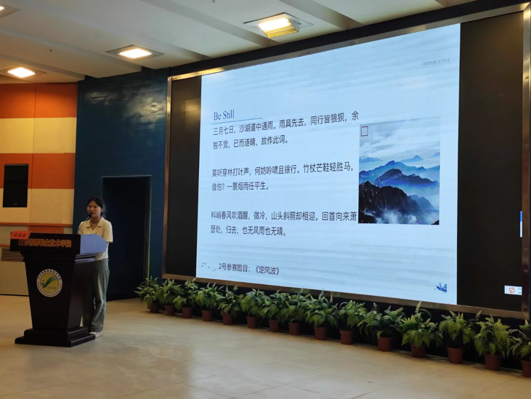 获得三等奖学生景红艳以《定风波》为主题进行演讲