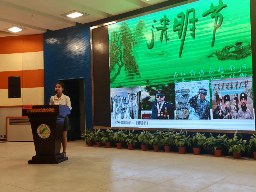获得一等奖学生王星宇以《清明节》为主题进行演讲
