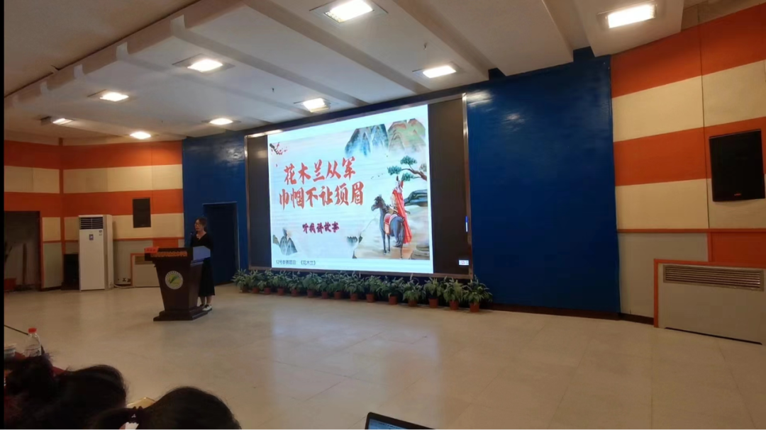 获得三等奖学生刘津利以《花木兰》为主题进行演讲