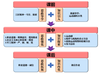 思政内容融入讲解: 近期最燃的一个历史性事件莫过于:2021年6月17日18时48分,中国人首次进入自己的空间站,和空间站共同亮相的是一个印有五星红旗及中国载人航天标志的机械臂。 这个堪比“变形金刚”的“大力神臂”一亮相便惊艳了众多海外网友,7自由度机械臂让中国空间站如虎添翼。它是我国目前智能程度最高、规模与技术难度最大、系统最复杂的空间智能制造系统,是经过14年研发打破西方垄断,技术领先全世界的“中国神臂”。机械臂需完成舱表状态检查,舱外状态监视,辅助航天员舱外活动和舱表爬行转移四项主要功能,从动图我们不难看出,机械臂的这些功能要依靠——机械运动来实现。 实现机械运动和动力传递的载体,我们称作“机构”。一些常见机构在我们的生活和学习中并不陌生,比如说机械臂中常见的连杆机构,减速箱中常见的齿轮机构,自行车中常见的链传动机构,等等。 三、课后 借助雨课堂平台发布作业和拓展学习资源,学生自主探究,进行知识巩固和拓展,借助微信群、钉钉群进行交流,答疑解惑。教师同时充当学生的心灵导师,帮助学生解答困惑、疏导心理、讨论社会热点,传递正能量,与学生亦师亦友,做学生的良师益友。