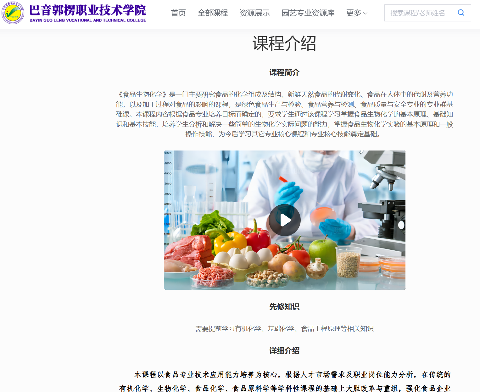 食品生物化学课程简介