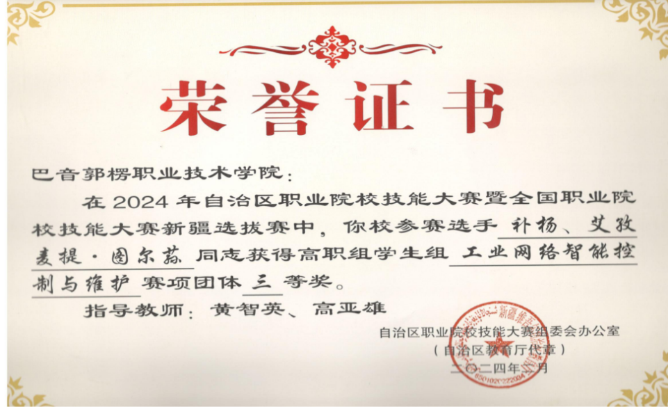 图5 2024年技能大赛获奖证书