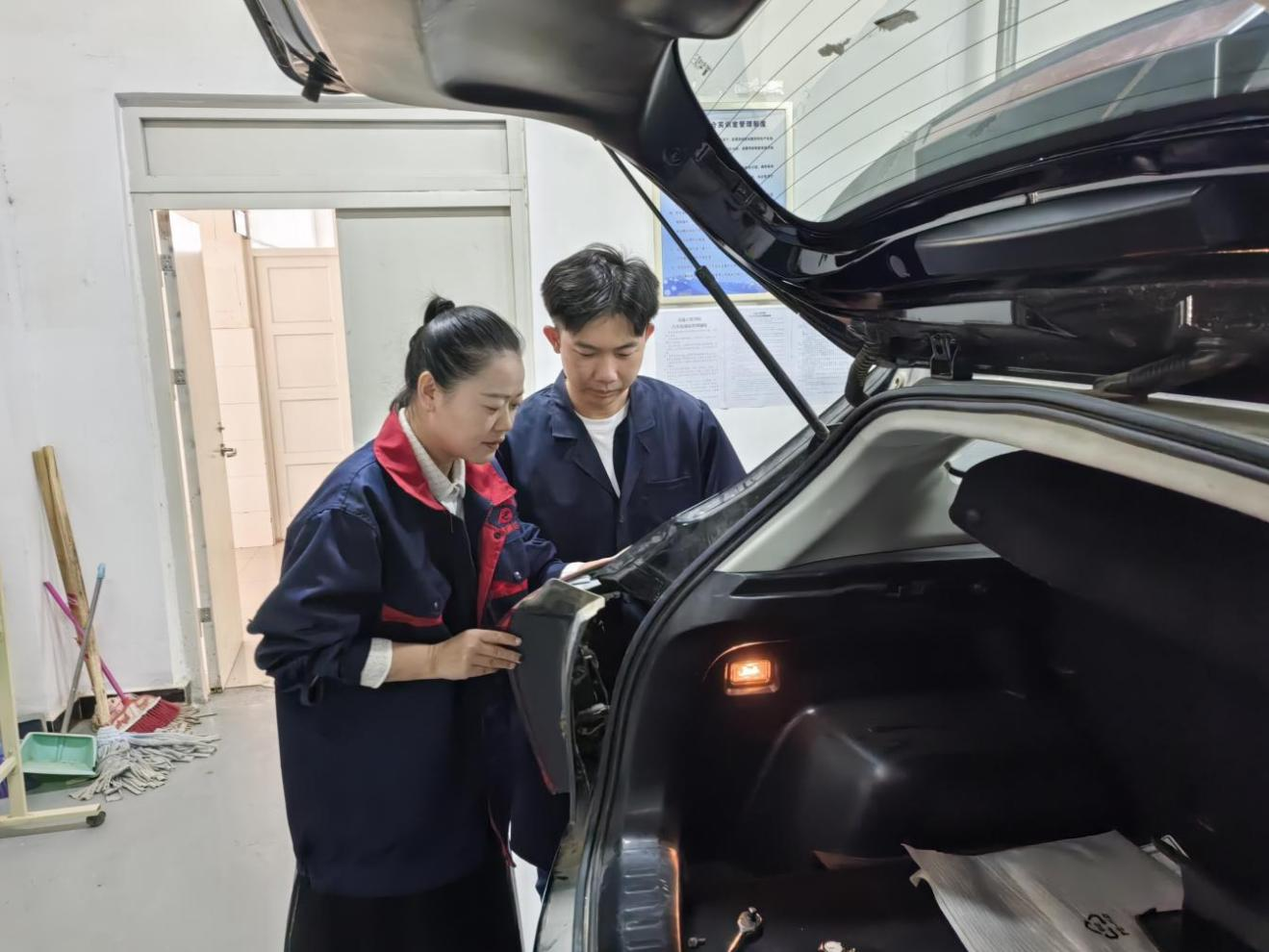 图2 同学们在实训车间上汽车维护与保养实践课