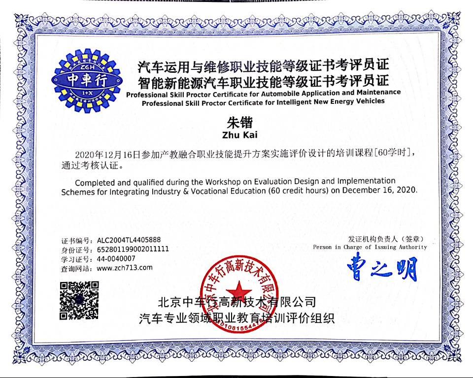 图8 教师获取的汽车运用与维修、智能新能源汽车1+X考评员证书