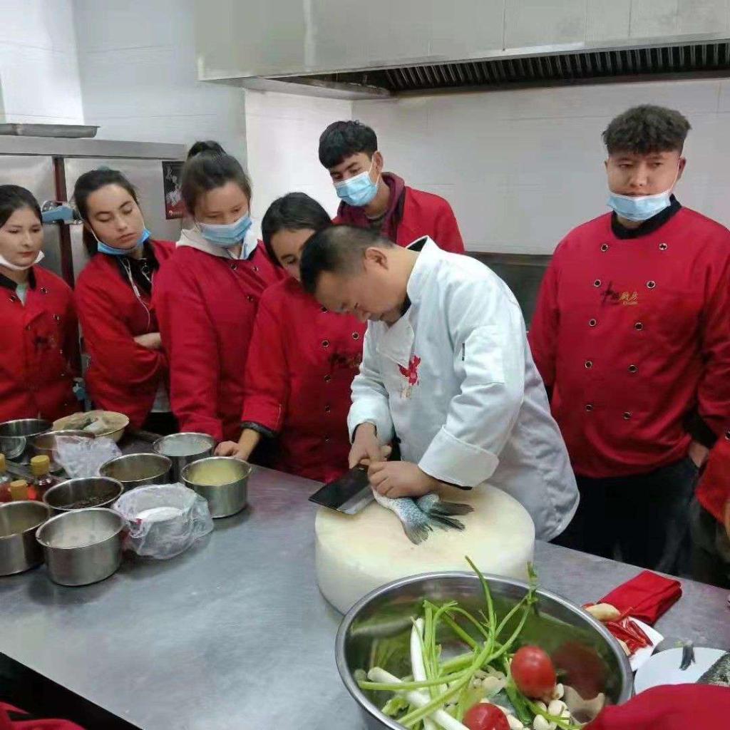 实习实训:对接真实职业场景或工作情境,在校内外进行烹饪基本功实训、烹饪工艺、凉菜制作、食品雕刻工艺、中西式面点工艺操作等实训。在楼兰宾馆、博斯腾宾馆、庞氏餐饮集团、百合酒店、园林宾馆等单位进行岗位实习。